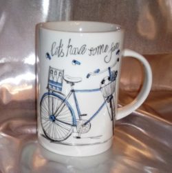 MUG à thé – tisane ou déjeuner « VELO » en porcelaine blanche décoré- vélo retro. Un modèle sobre droit très sympa, vendu à l’unité . Contenance 28cl hauteur 11cm environs.